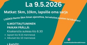 Nyt on aika kaivaa lenkkarit esiin ja suunnata kohti valoisaa Vuolenkoskea lauantaina 9.5. - Rento juoksutapahtuma Kevätkirmaus kutsuu mukaansa upeisiin...