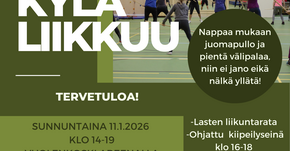 Sunnuntaina 11.1.2026 klo 14-19 järjestetään taas kaikille avoin ja ilmainen Koko kylä liikkuu -nimellä kulkeva liikuntatapahtuma Vuolenkoski Areenalla....