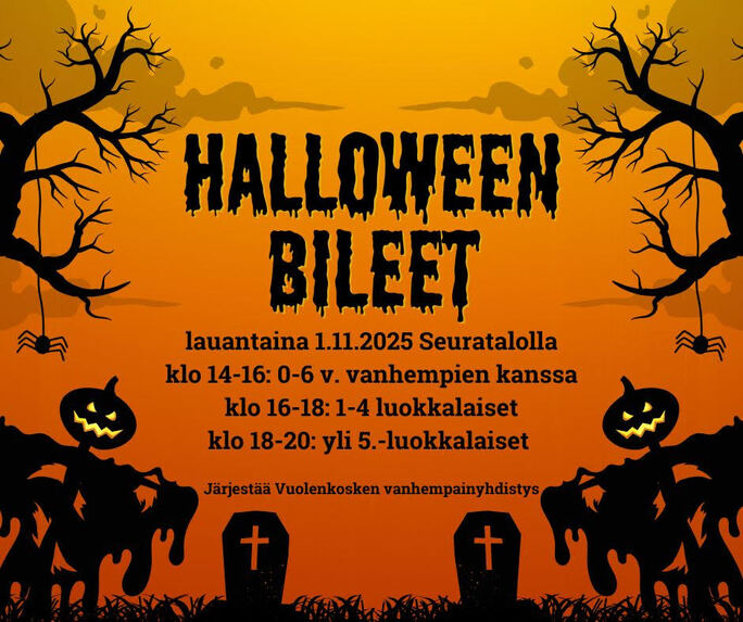 Uskallatko mukaan hurjiin Halloween juhliin lauantaina 1.11.? Luvassa kammotuksia, leikkejä ja öllöttäviä herkkuja. Tapahtuma ja tarjoilut ovat ilmaisia. Muistathan pukeutua teeman mukaisesti