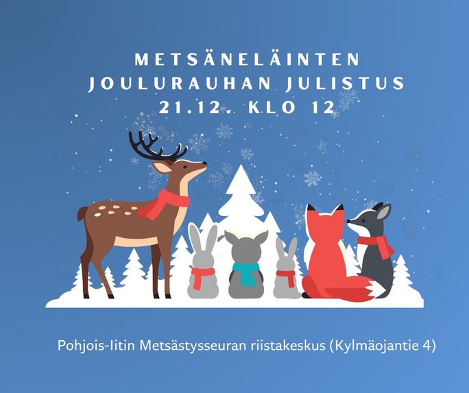 Vuoden pimeimpään aikaan sytytetään tulia kodalle valaisemaan joulunodotusta ja julistamaan joulurauhaa eläinten ja ihmisten välille. Keskipäivän koitteessa kello 12:00 Pohjois-Iitin Metsästysyhdistys julistaa joulurauhan eläimille.